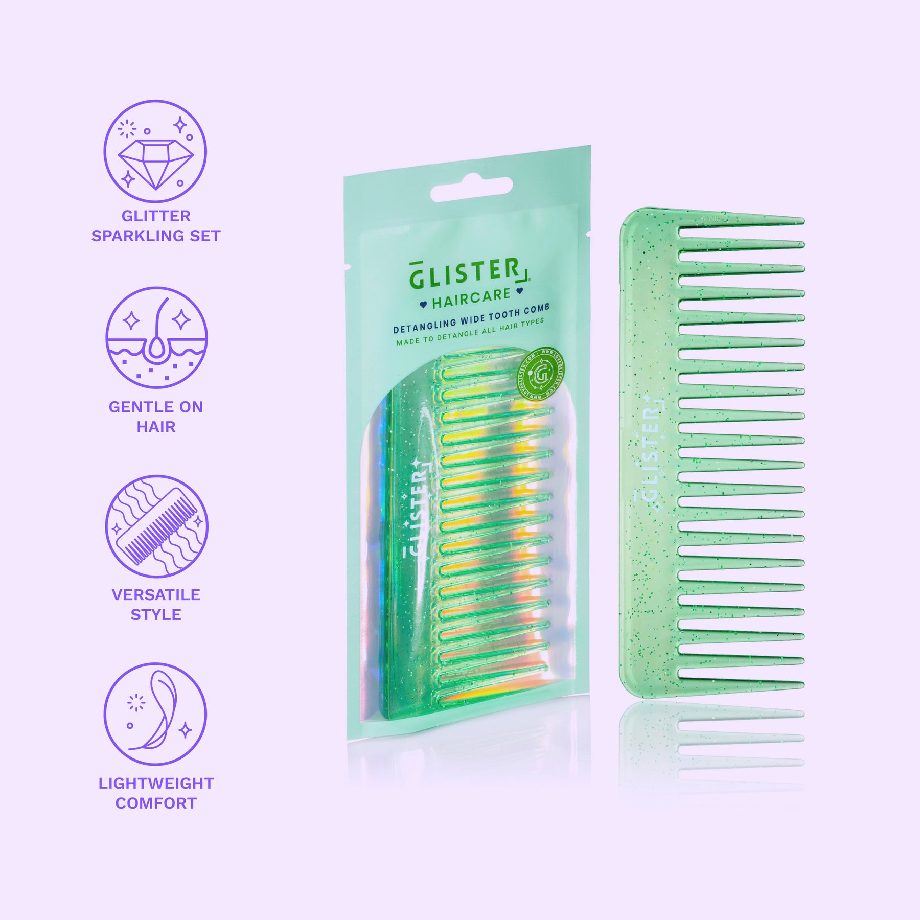 • Glamorous Design: Radiate style and personality with the comb's vibrant, glitter-infused aesthetic.